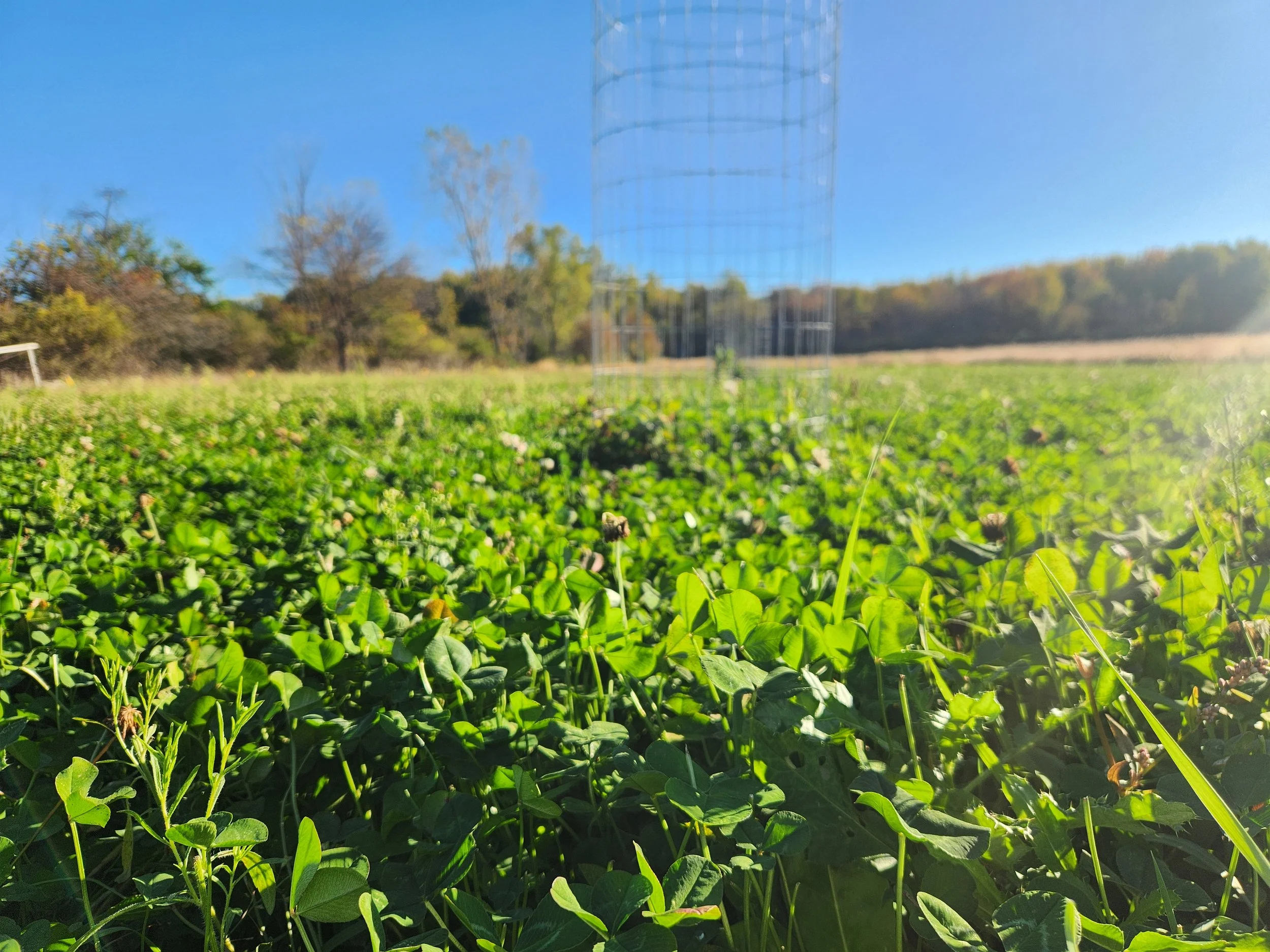 Also, a blend of clover; however, all the seed is coated, with half being annual and half perennial. This blend got out of the ground quicker and did a better job competing against weeds than Competitor 1, but it did not produce much more tonnage inside the cage.